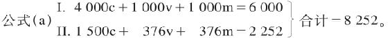 在五年规模扩大的再生产期间,第I部类和第II部类的总资本,已经由5 500c+1 750v=7 250,增加到8 784c+2 782v=11 566,也就是按100∶160之比增加了。总剩余价值原来是1 750,现在是2 782。已经消费的剩余价值,原来在第I部类是500,在第II部类是600,合计=1 100;但是在最后一年,在第I部类是732,在第II部类是745,合计=1 477,因此,是按100∶134之比增加了。108