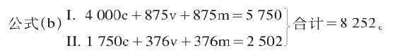 这样,这个公式似乎是为简单再生产而列出的,以至于剩余价值全都作为收入花掉,而没有积累起来。在(a)和(b)这两个场合,年产品的价值量是相同的,只是在(b)的场合,它的各种要素在职能上的组合使再生产按照相同的规模再开始,而在(a)的场合,年产品各要素在职能上的组合却形成规模扩大的再生产的物质基础。在(b)的场合,(875v+875m)I=1 750I(v+m),它和1 750IIc交换时,没有余额,而在(a)的场合,(1 000v+1 000m)I=2 000I(v+m),它和1 500IIc交换时,却留下一个余额500Im,供第I部类进行积累。