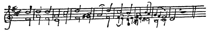 我还想告诉你,我正在谱曲,而且是谱写赞美诗。但是这件事可难了:节拍、升半音以及和声带来很多麻烦。到目前为止,我的进展还不大,但还是想给你看一段样品。这是赞美诗的前两行:“我们的上帝,强大的堡垒。”FN4