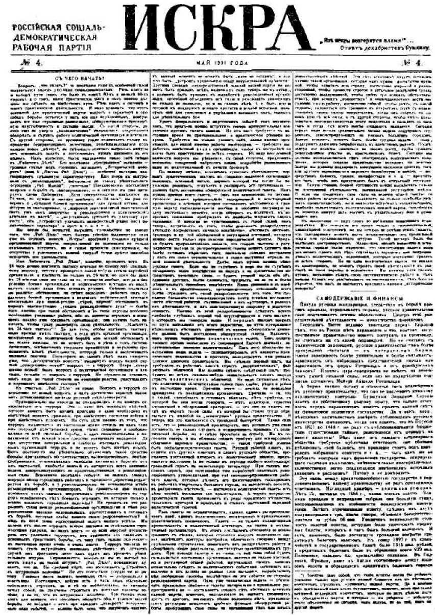 По нашему мнению, исходным пунктом деятельности, первым практическим шагом к созданию желаемой организации, наконец, основною нитью, держась которой мы могли бы неуклонно развивать, углублять и расширять эту организацию, - должна быть постановка общерусской политической газеты. Нам нужна прежде всего газета, - без нее невозможно то систематическое ведение принципиально выдержанной и всесторонней пропаганды и агитации, которое составляет постоянную и главную задачу социал-демократии вообще и особенно насущную задачу настоящего момента, когда интерес к политике, к вопросам социализма пробужден в наиболее широких слоях населения. И никогда не чувствовалась с такой силой, как теперь, потребность в том, чтобы дополнить раздробленную агитацию посредством личного воздействия, местных листков, брошюр и пр., той обобщенной и регулярной агитацией, которую можно вести только при помощи периодической прессы. Вряд ли будет преувеличением сказать, что степень частоты и регулярности выхода (и распространения) газеты может служить наиболее точным мерилом того, насколько солидно поставлена у нас эта самая первоначальная и самая насущная отрасль нашей военной деятельности. Далее, нам нужна именно общерусская газета. Если мы не сумеем и пока мы не сумеем объединить наше воздействие на народ и на правительство посредством печатного слова, - будет утопией мысль об объединении других, более сложных, трудных, но зато и более решительных способов воздействия. Наше движение и в идейном и